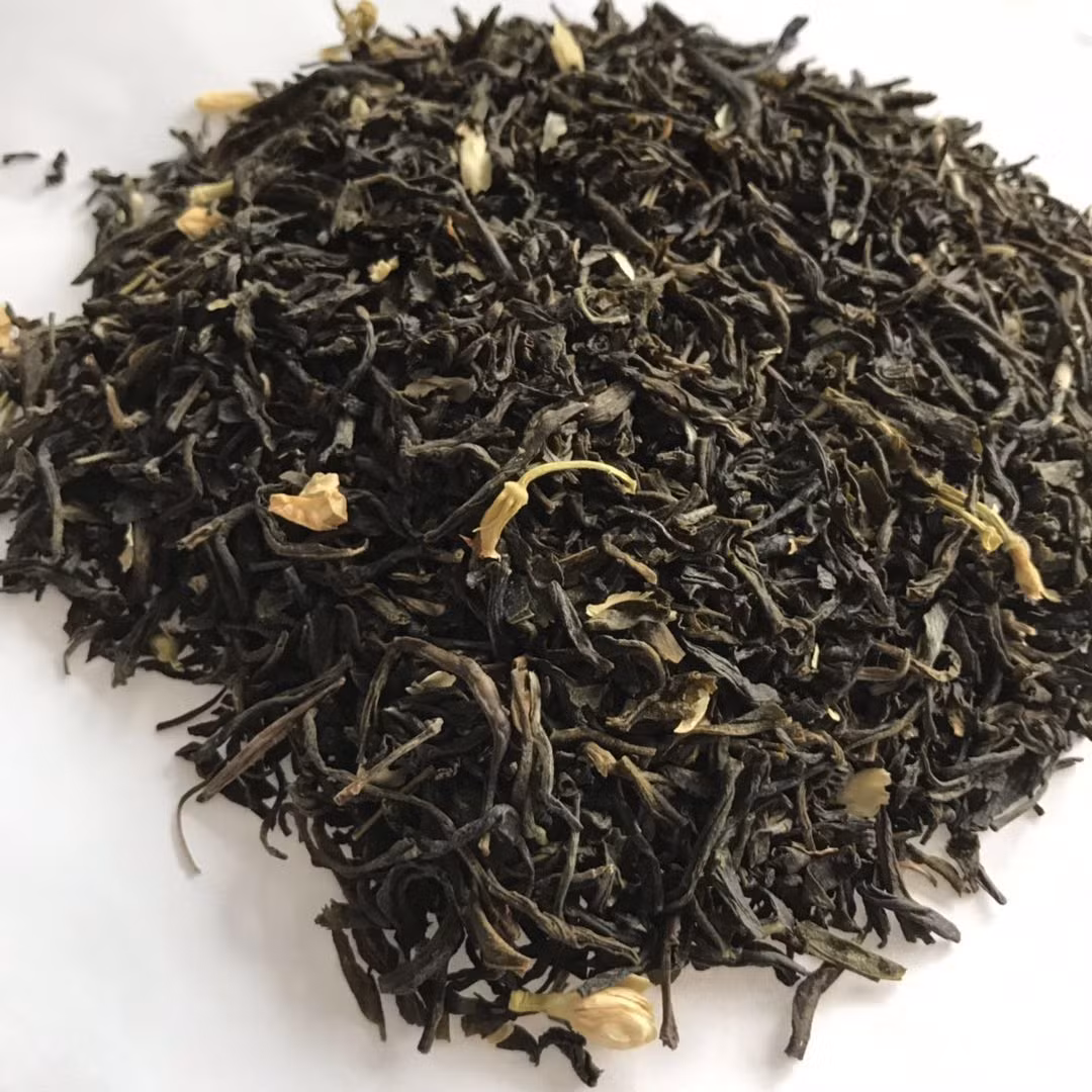 Strong aroma traditional Jasmine Tea Leaves, This exquisite tea is made with one bud and one leaf, scented with jasmine flowers for many times. The curving tea appears tight, even, and tippy, with a fresh fragrance of jasmine flowers, clean sweet and brisk taste, resistance to brew.
